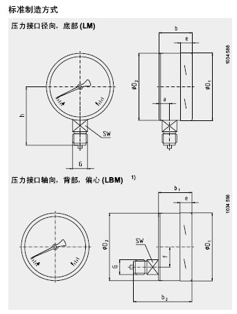 表盤直徑 100: 0 ... 0.6 to 0 ... 1000 bar